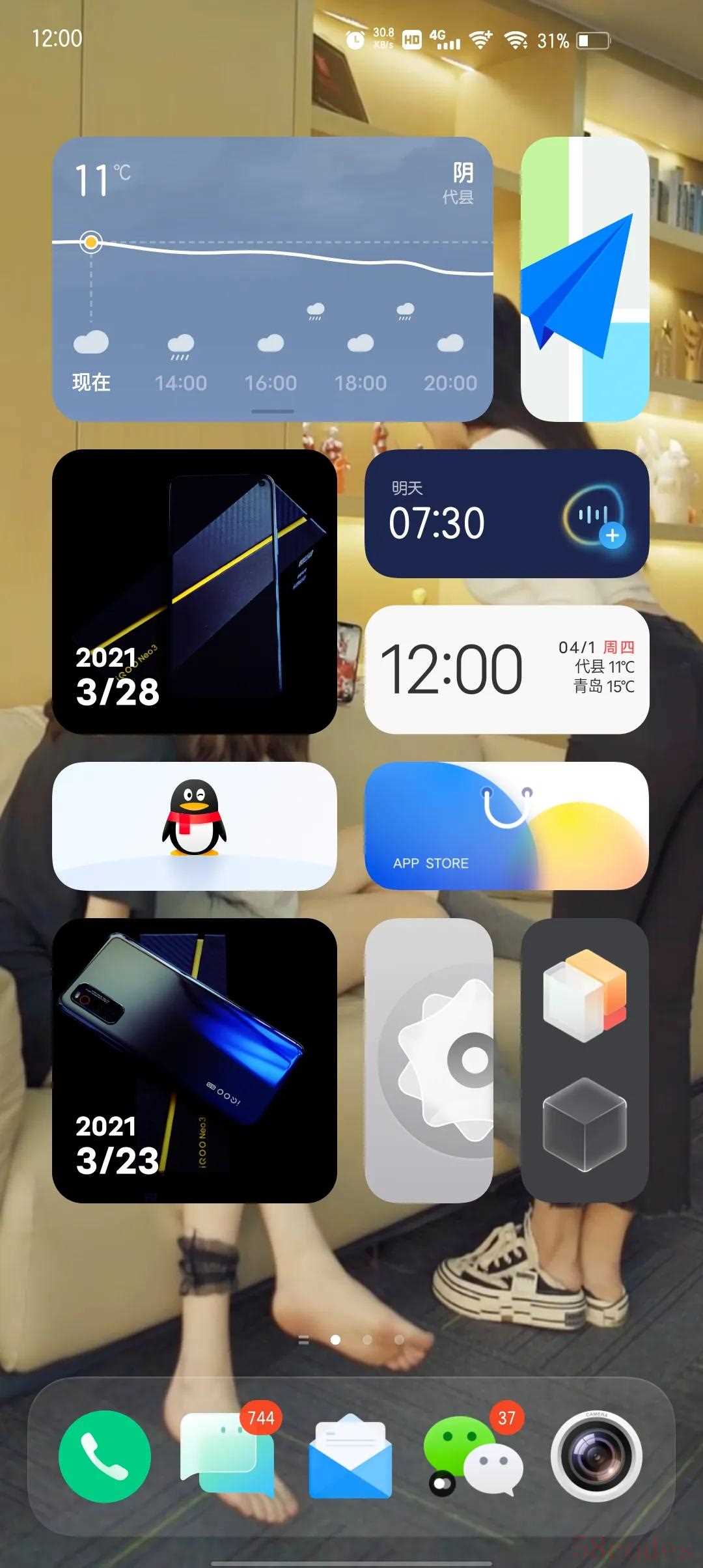 之前刚升级origin os系统弄的,花了挺长时间,之前怎么弄都不满意,现在这个感觉好点,发出来顺便看看大家的,我的是neo3,哈哈,之前听说有新系统,看了官方的预告,各种社区,论坛报名,费心费力,第一批内测的机型有neo3的,当时官方说是第二天上午10点更新,结果我自己忘记了定闹钟,错过了,之后在iqoo社区填资料报名,折腾了好久,结果也没推送,后来越来越不期待了,反而给我推送了,无意之间点开进去4个多G的更新包,果断更新,不过新系统还是不错的,比较喜欢这种自由调节大小app的操作格式,各种人性化的小细节,主要是自由度极高,可以让用户自己相对自由搭配桌面app,这点我是比较喜欢的,不管怎么说,其中还有许多小瑕疵,不过并不影响喜欢的人对它的热爱,希望国产系统越来越优秀吧。