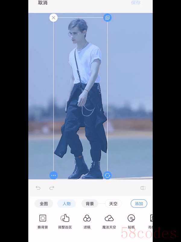 也可以在相册挑选图片设置为贴纸,点击「+自定义」按钮,选好图片后会自动识别抠图主体,自己调整好细节范围,就可以保存贴纸了。
