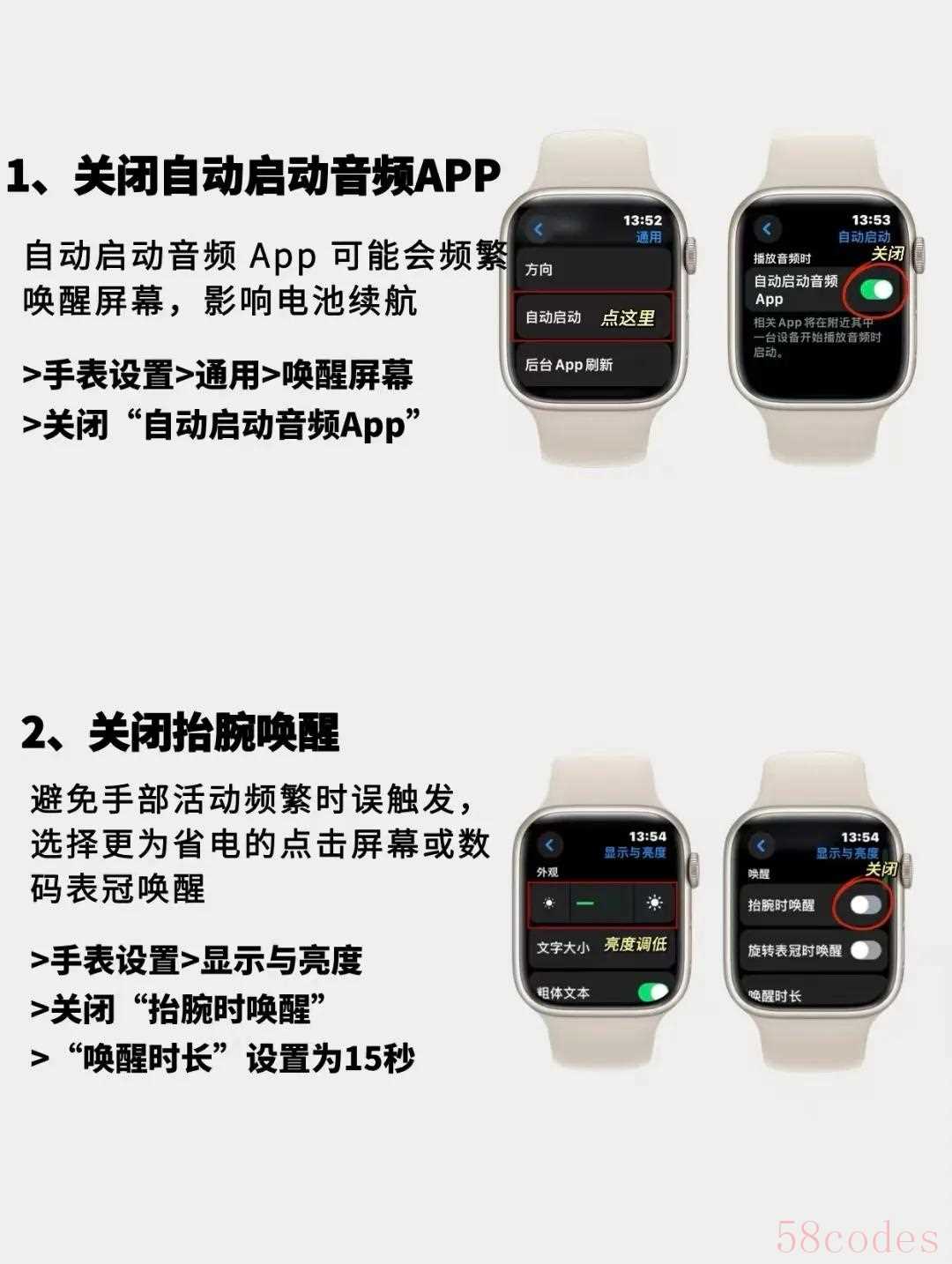 - 自动启动音频 APP:手表总“自动播音乐”?→ 打开设置→通用→唤醒屏幕,关闭“自动启动音频 App”,别让它偷偷唤醒屏幕耗电;