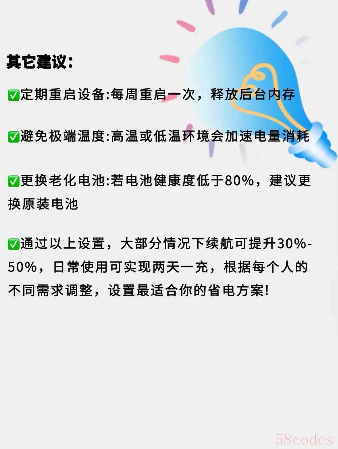 - 设置后:轻度使用→ 两天一充;重度使用→ 1 天 1 充,续航直接翻倍,再也不用“充电器不离身”!