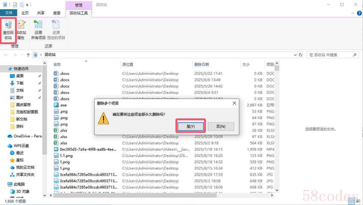 随手删除的文件并未从电脑上真正消失,而是存放到了回收站,同样会占用C盘空间。先找到并双击电脑桌面上的回收站图标,打开后直接选中左上角的“清空回收站”并在弹出窗口按下“是”,这样就永久删除了包含的所有项目且无法还原了。
