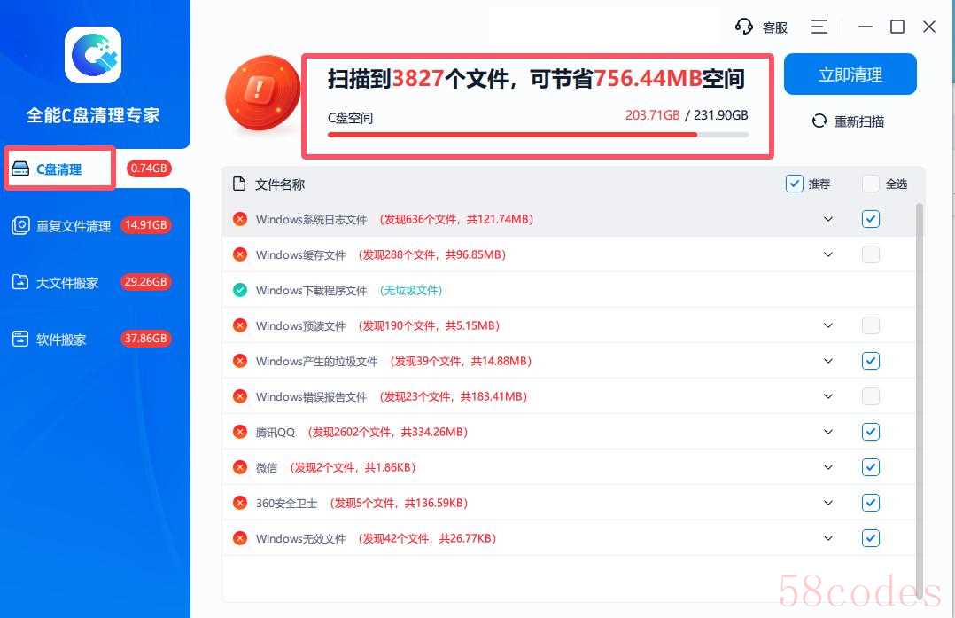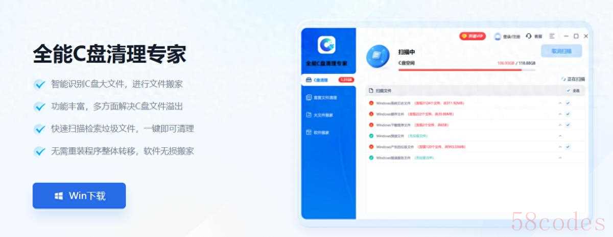 这款光看名字就知道是专业的,操作也是简单易上手,除C盘清理外还涵盖重复文件清理、大文件搬家和软件搬家功能,助力安全、有效地释放电脑C盘空间。