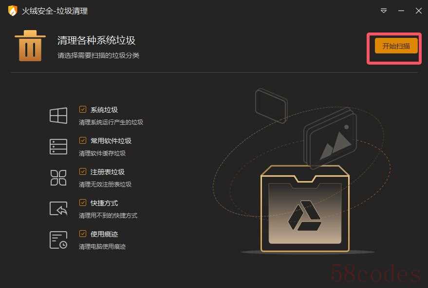 一款口碑很不错的电脑安全防护软件,除主打的快速查杀外还内置【垃圾清理】在内的多个安全工具。点击进入后直接点击“开始扫描”,系统缓存、使用痕迹、无效注册表等各种垃圾文件通通都支持一键清理,按需选择后等完成就OK了。