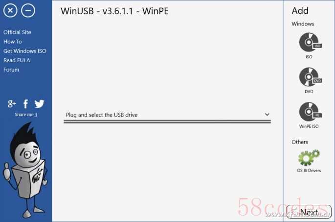 接下来,运行WinUSB。软件运行后提示插入并选择USB介质(Plug and select the USB drive)(图1)。当USB介质插入之后,列表中就会自动显示该介质的卷标名称。