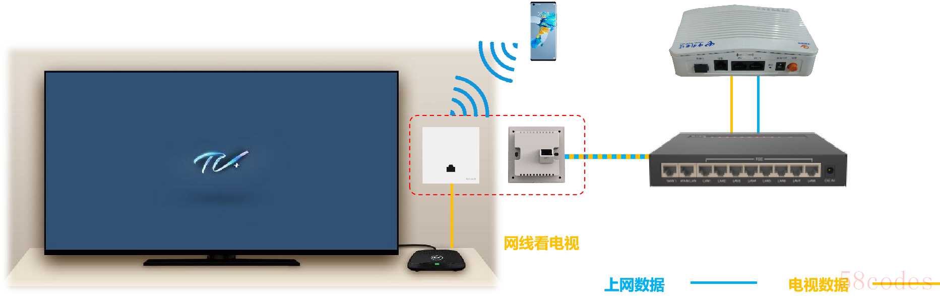 但是有些家庭在装修的时候(或精装房),客厅电视位置只有一根网线,那这根网线是接机顶盒看电视,还是接路由器上网。