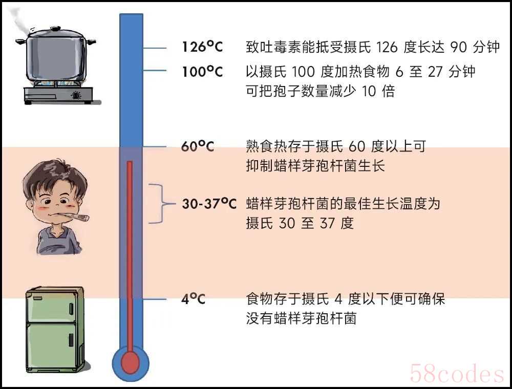 蜡样芽孢杆菌产生的毒素耐热性强,能耐受住126℃高温达90分钟。一旦在食物中产生毒素,即使让食物彻底熟透,也不能将之消除。