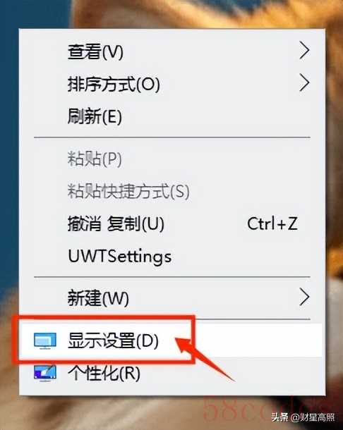 右击鼠标,选择显示设置
