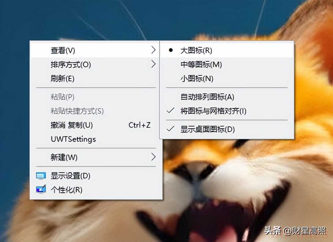 桌面右击查看选择大中小图标,桌面图标显示不一样