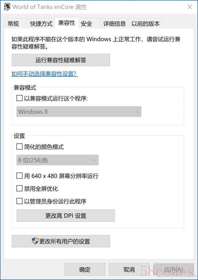此外我们还可以针对单个应用程序进行缩放设置优化。在想要设置的程序快捷方式上用鼠标右键选择属性,在“兼容性”选项卡下,点击进入“更改高DPI设置”。