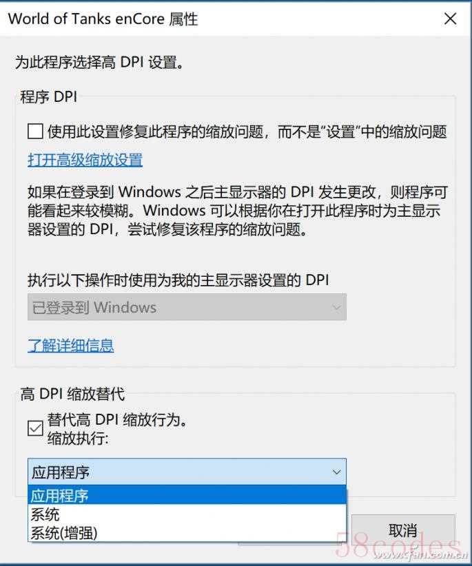 勾选“替代高DPI缩放行为”,在下拉菜单中选择“应用程序”,可以有效缓解缩放导致的应用程序显示虚化问题,但由于程序开发不合规等问题(没有按照微软标准API接口执行),有的程序界面会变得极为怪异,出现类似的问题,只要将下拉菜单中的选项改成“系统(增强)”即可。