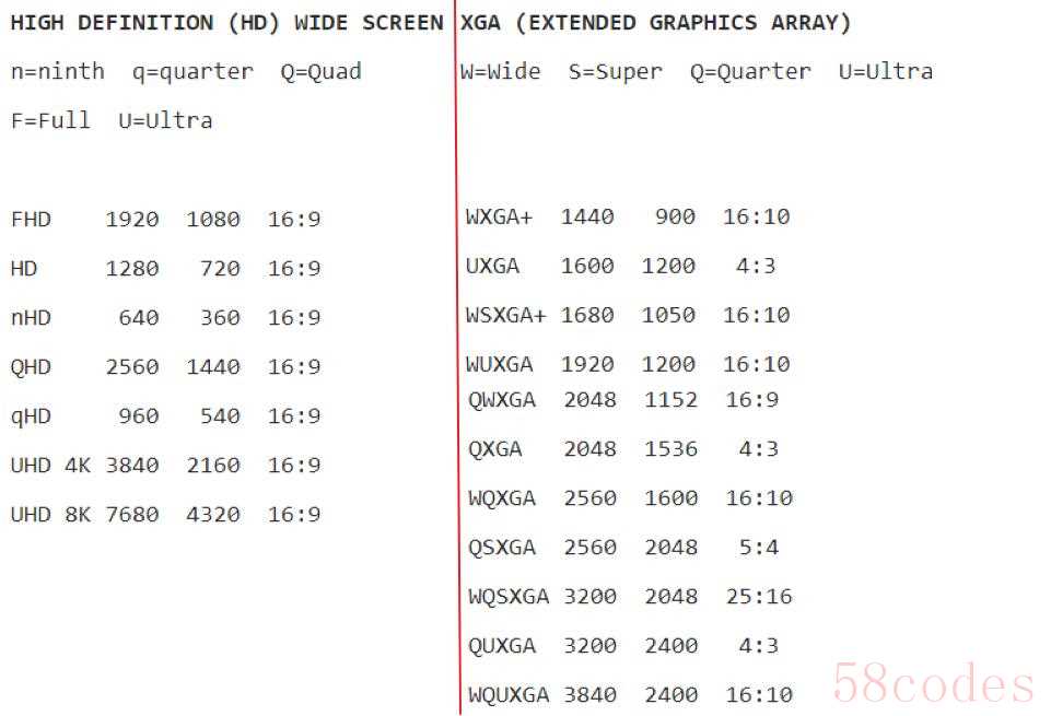 屏幕分辨率(screen resolution)显示器上水平(长边)和垂直(短边)方向上像素的数量,像素越多、不滚动的情况下可见的信息越多。屏幕的分辨率为1920*1080,则意味着是1920个水平像素和1080个垂直像素。有时候会用长边分辨率的近似数值表示屏幕的分辨率,比如一般说的2k/2.5K实际上是指长边分辨率2560左右;有时候会用短边分辨率数值进行代指,比如1080p代指常见的1920*1080分辨率。有时候会用字母缩写表述一个屏幕的分辨,字母缩写内含有分辨率、比例信息,常见的屏幕分辨率字母表如下