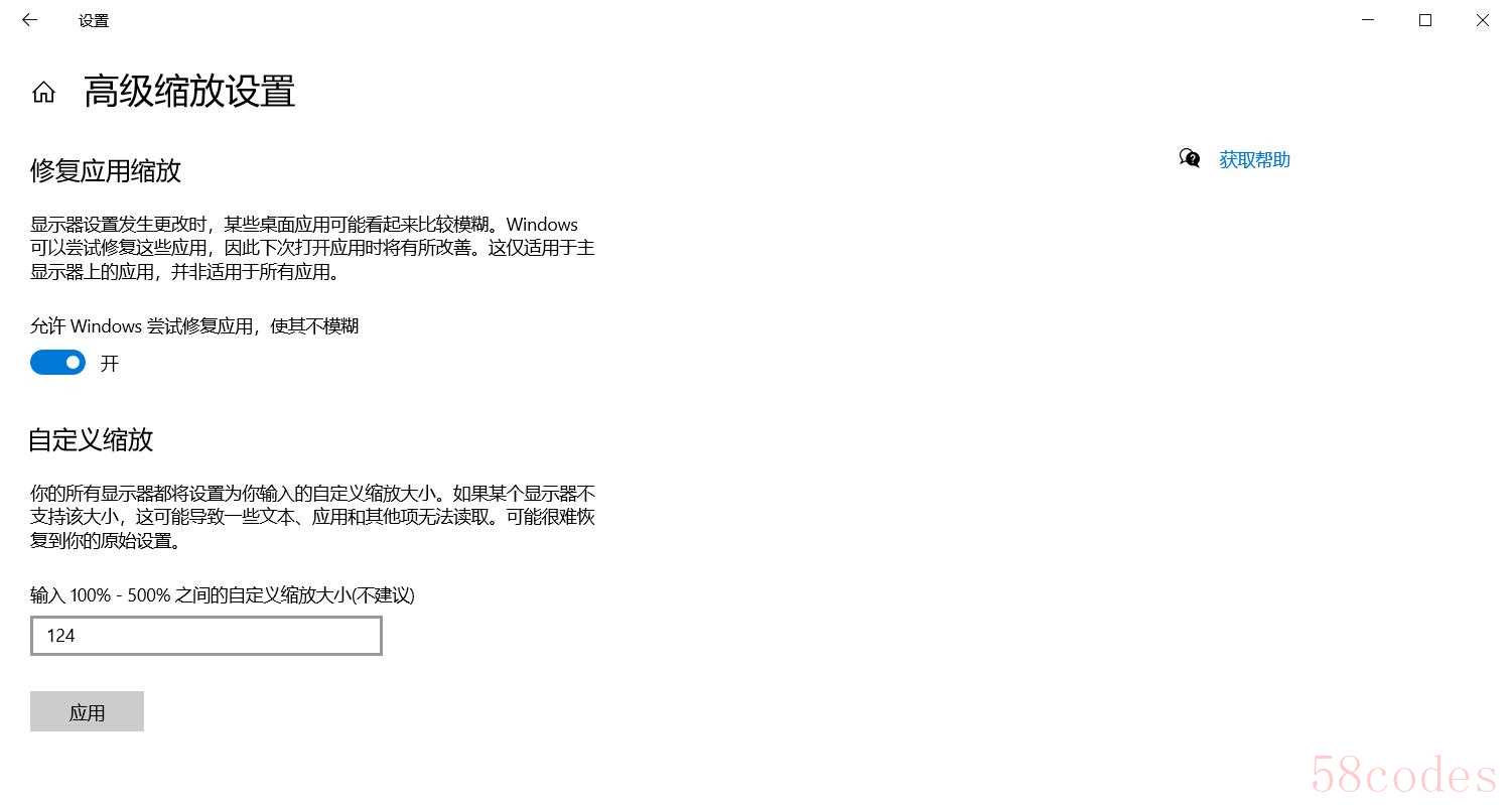 最好的缩放就是不缩放,比如24寸1080p、27寸2k,34寸超宽带鱼等。24寸4k、27寸4k这种这种必要时可以选择整数倍缩放;如果非整数倍缩放,请在【显示设置】——【显示】——【高级缩放设置】中修改为自定义的比例,比如大家喜欢的124%缩放,然后开启“修复缩放设置”。
