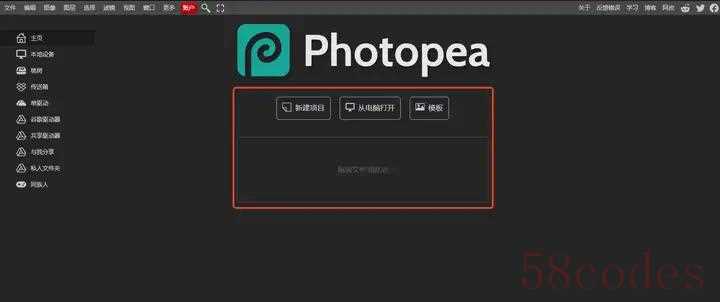打开网站,网站支持新建项目、从电脑打开、模板以及将文件拖拽到灰色方框中,大家可以任意选择需要的打开图片方式。