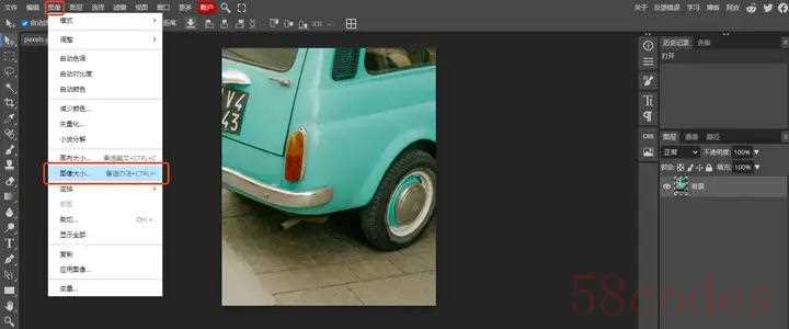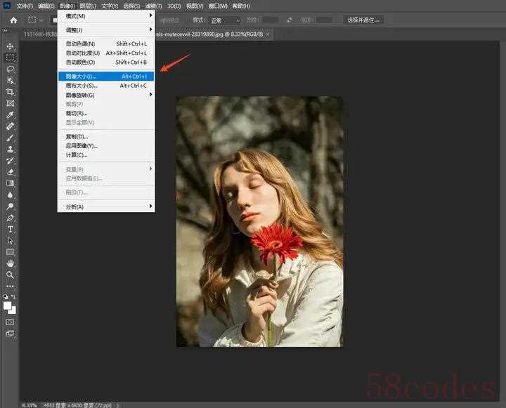 2. 选择 `图像` > `图像大小`。