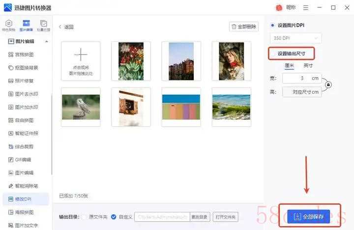 还是设置输出的图片尺寸,最后点击【全部保存】即可得到修改dpi后的图片。