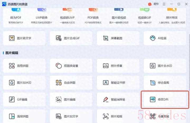 打开软件,选择首页的【修改dpi】。