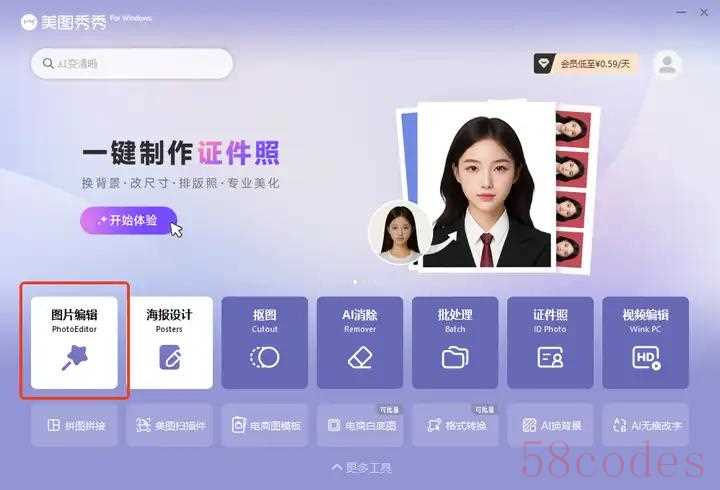 打开软件,选择首页的【图片编辑】,导入图片。