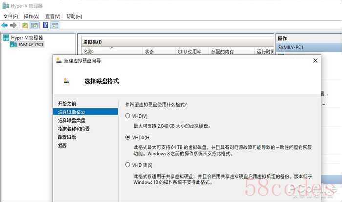 - 在 Hyper-V 管理器中,点击“操作”菜单,然后选择“新建” > “虚拟机”。