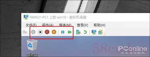 除此之外,你肯定也看到了“检查点”,它与本机系统还原点没有区别,软件自动生成,可以在需要时迅速恢复正常状态。不过Hyper-V没有提供“重启”按钮,需要重启的话只能通过开始菜单了。