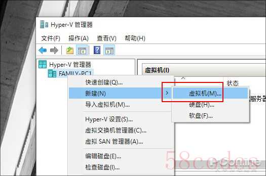 装好的虚拟机并不能直接使用,就像现实中的电脑一样,你要首先为它配置硬件。具体方法:点击左下角搜索框,输入“Hyper”调出Hyper-V管理器,然后在管理器窗格左侧右击电脑图标,选择“新建”→“虚拟机”。