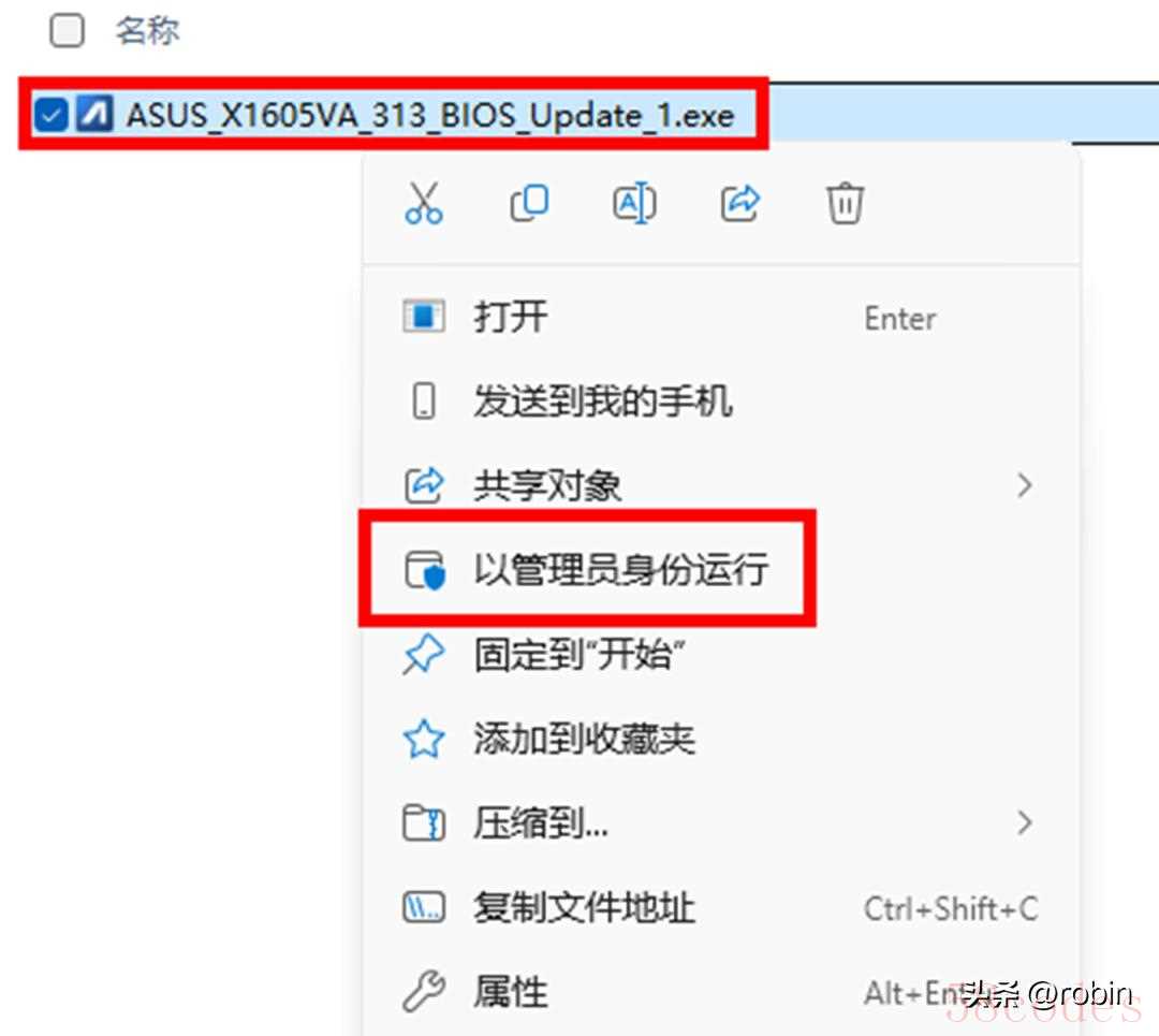 2.下载BIOS更新文件到本地后,右击【以管理员身份运行】,并按提示操作,直到完成BIOS更新。
