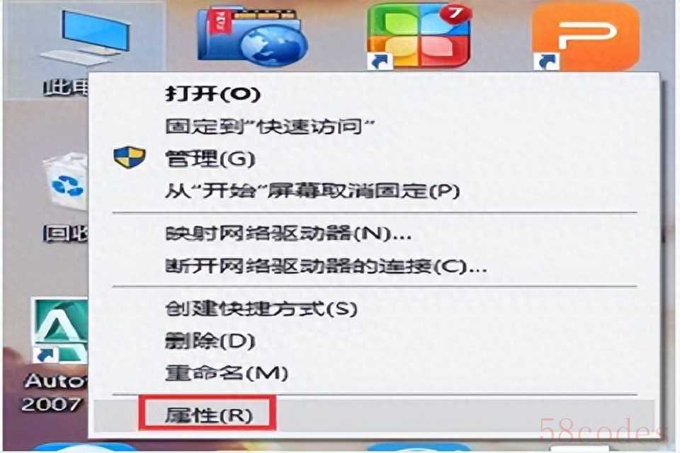 1.首先,在桌面上找到“此电脑”图标,然后鼠标在“此电脑”处点击右键,选择“属性”选项;