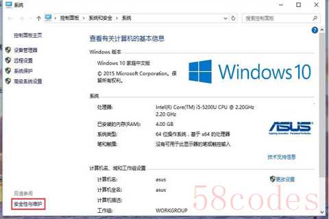 2.然后,在弹出的“控制面板”界面中点击“系统和安全”,在点击进入“系统”选项,点击左下角的“安全性与维护”选项;