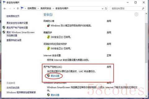 4.找到“用户账户控制(UAC)”,点击“更改设置”;