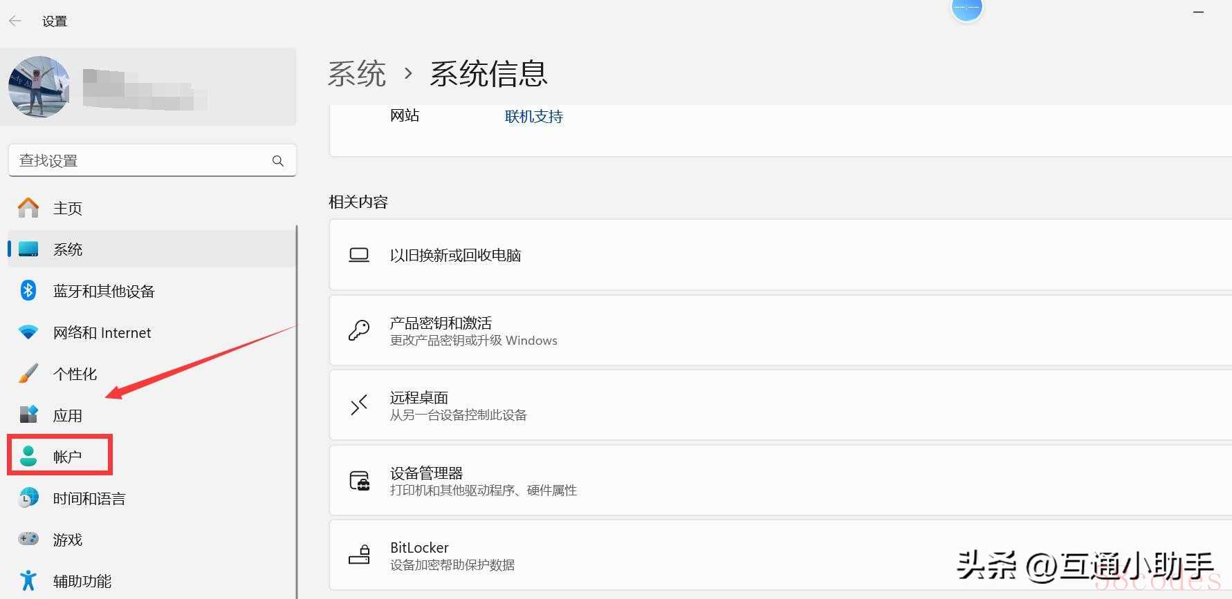 2. "进入账户:" 点击“账户”。