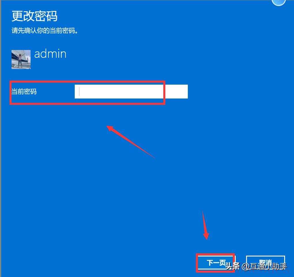 6、进入更改密码界面,输入当前密码,点击“下一步”。