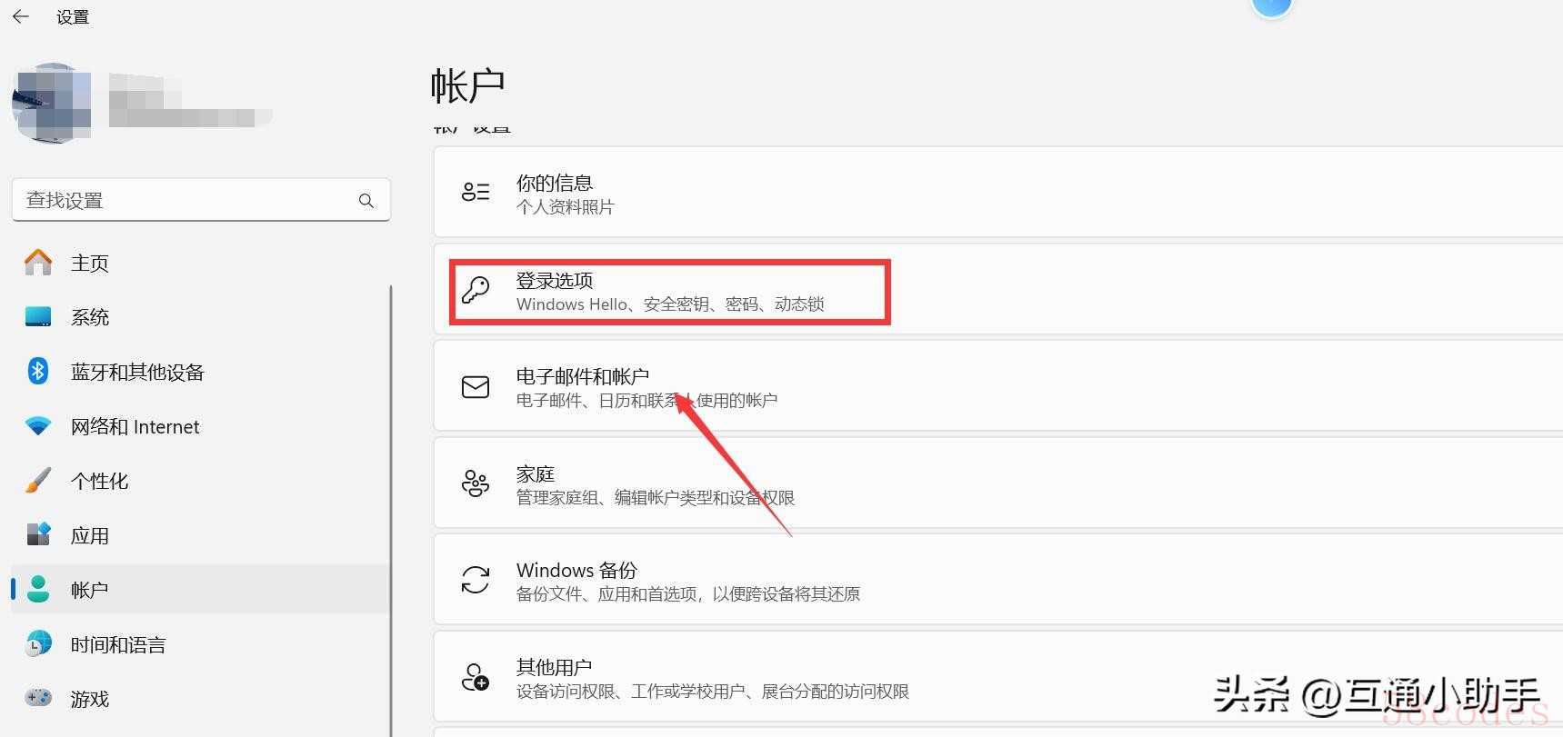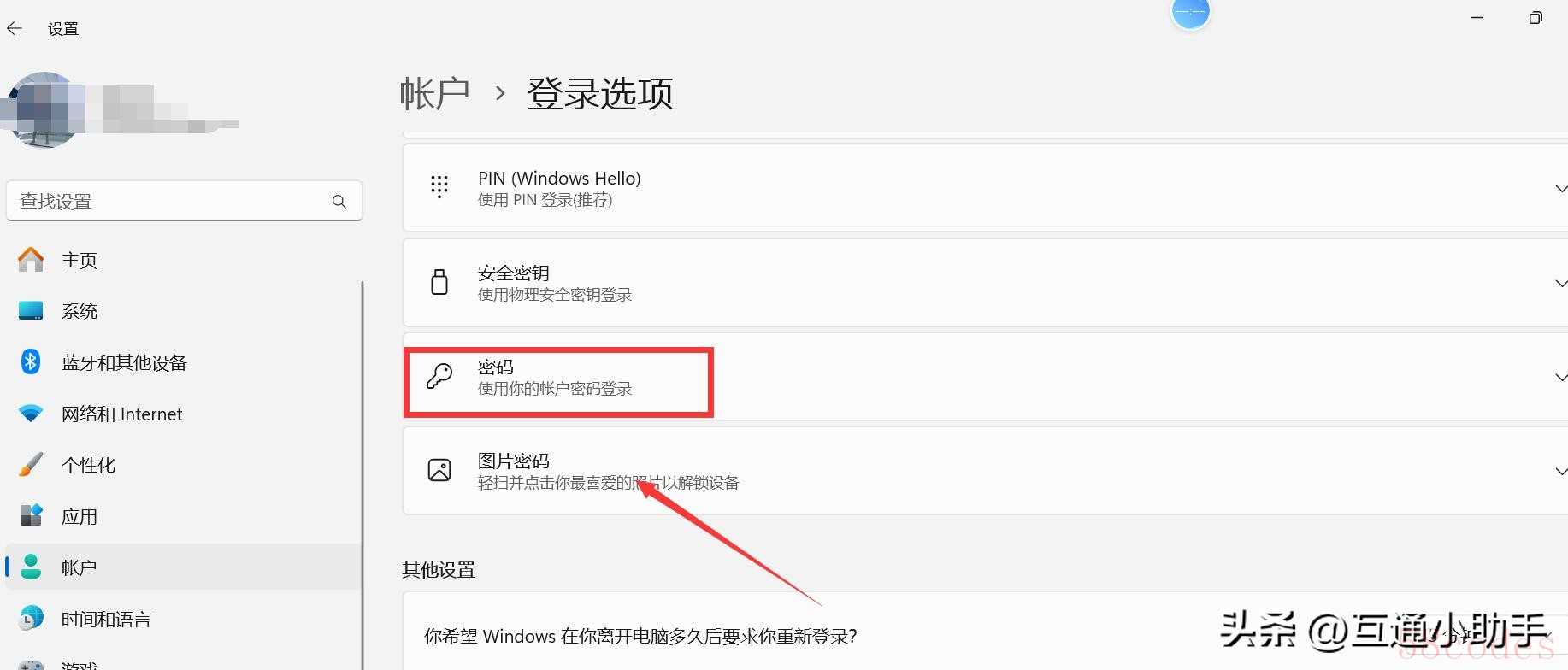 3. "选择登录选项:" 在左侧菜单中选择“登录选项”。