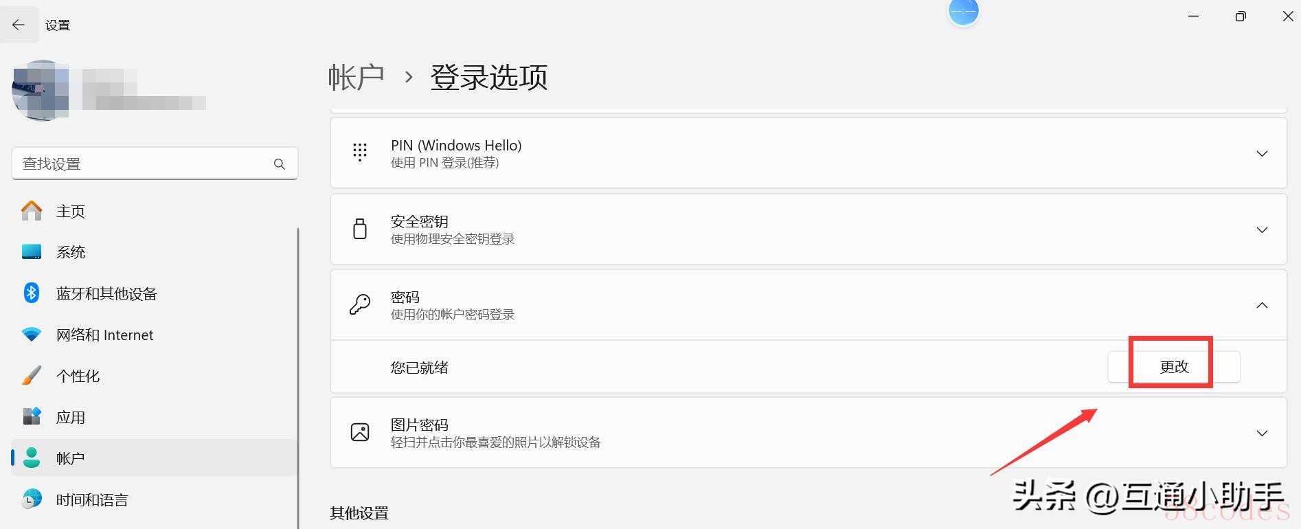5. "更改密码:" 点击“更改密码”。
