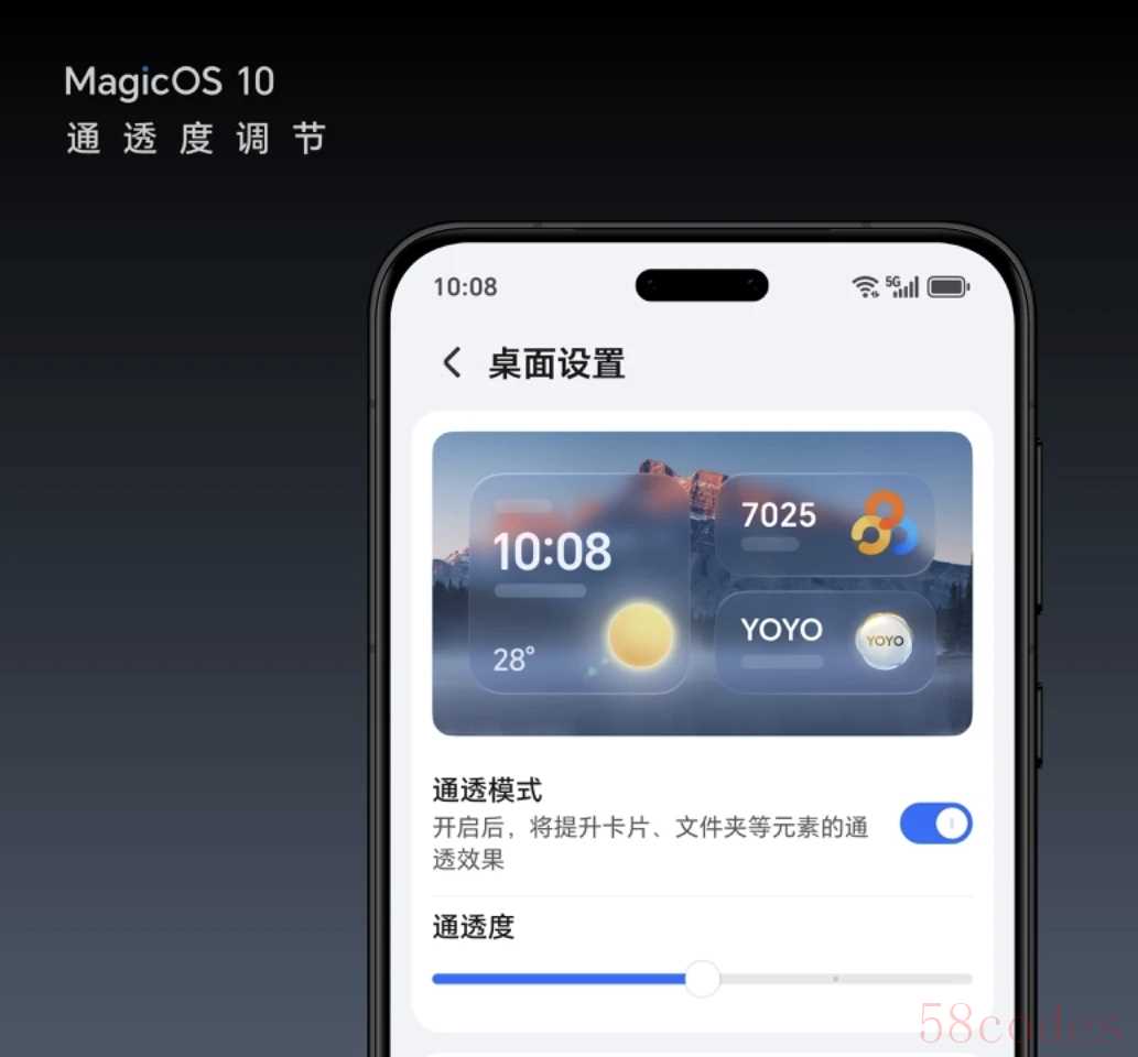 荣耀MagicOS 10将透明设计推向了新的高度,这不仅仅是对屏幕边缘的浅色处理,而是更深层次的、系统级的视觉整合与交互创新。