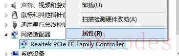 第二步、在设备管理器窗口,找到并展开电脑网卡,对着它单击鼠标右键,菜单中选择“属性”