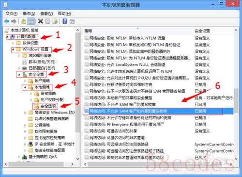 “计第机配置”——“Windows设置”——“安全设置”——“本地策略”——“安全选项”——“网络访问:不充许SAM帐户和共享的匿名枚举”——改为“已禁用”