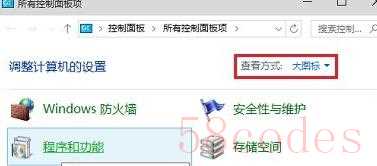 第一步、控制面板窗口,大图标查看方式下,找到并点击“程序和功能”