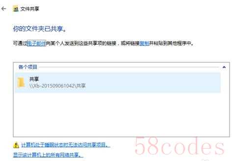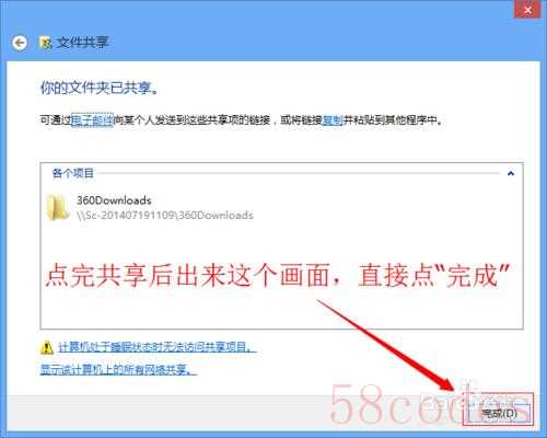 系统提示共享文件夹设置成功,点击完成。如下图所示。