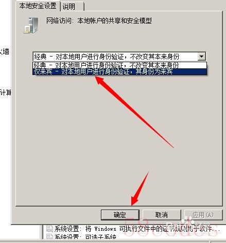 “计第机配置”——“Windows设置”——“安全设置”——“本地策略”——“安全选项”——“网络访问:本地帐户的共享和安全模型”——改为“经典 - 对本地用户进行身份验证,不改变其本来身份”