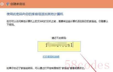 第七步:稍等一会,创建家庭组就完成了,记住家庭组的密码,使用此密码向你的家庭组添加其他计算机。点击完成,退出创建家庭组。如下图所示。