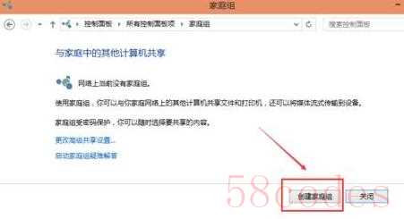 第三步:打开家庭组窗口,点击创建家庭组。如下图所示。