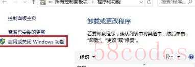 第二步、在程序和功能窗口,点击左侧“启用或关闭Windows功能”