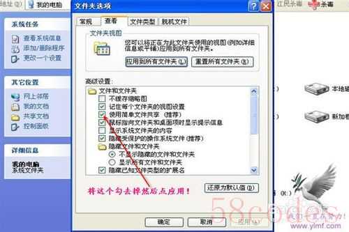这是我们正常的共享使用之中因为在安装某些安全软件的时候给关闭了。我们只要再次把“使用简单的文件共享”前面的勾去除即可!