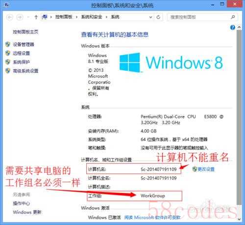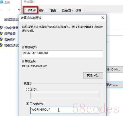 第一建立相同的工作组:我建立的工作组是WORKGROUP工作组如图: