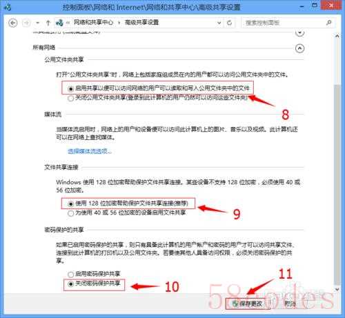 切换到所有网络,关闭密码保护共享,点保存更改。