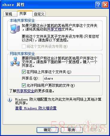 接下来我在xp系统里共享的是桌面的share文件夹,在文件夹上右击属性—点击共享—勾选“在网络上共享此文件夹”和“允许更改我的文件”这里个选项,单击确定就实现了xp里的文件夹共享!!!
