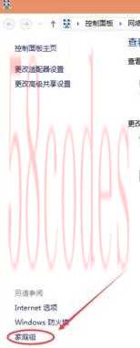 第二步:点击网络和共享中心窗口左下角的家庭组,如下图所示。