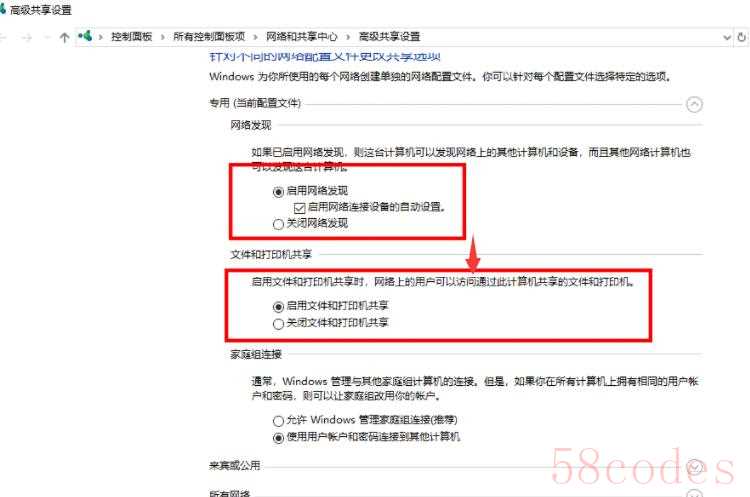 - 在“当前配置文件”下,确保“网络发现”已启用。如果没有,点击“保存更改”。
