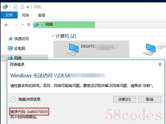 windows10系统访问共享文件夹时找不到网络路径,详细里面显示0x80070035,这种情况要如何解决呢?