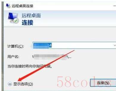 5.打开远程桌面连接的窗口之后,点击左下角的“显示选项”,如图所示。