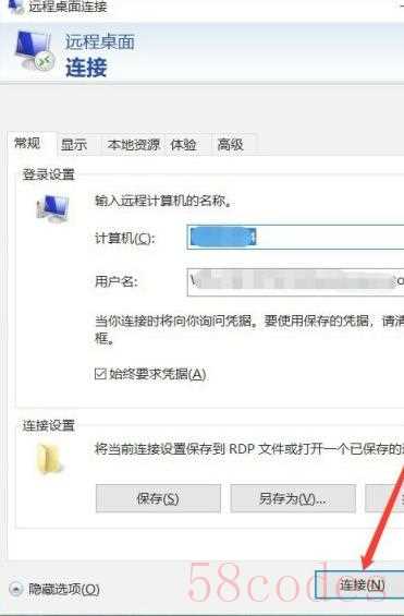 6.然后输入要远程连接的计算机ip和用户名,点击下面的“连接”即可,如图所示。 以上就是联想win10系统远程桌面连接操作步骤,希望能帮助到大家。